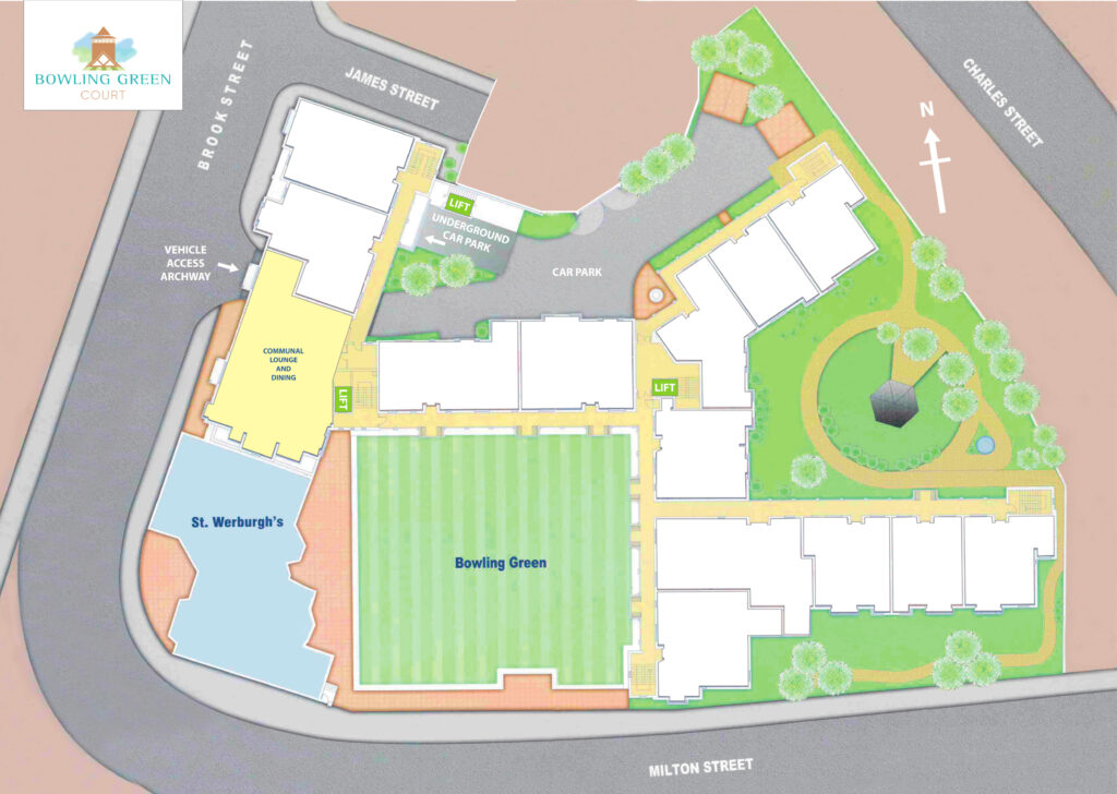 Bowling Green Court offers 49 generously sized apartments across four floors, with 16 distinct internal layouts to suit a variety of preferences. Whether you prefer a compact 785 sq ft / 73 m2 home or a generous 1518 sq ft / 141 m2, there’s an option to match your lifestyle. Ground floor apartments offer direct garden access, while upper-floor units may feature Juliet or full balconies, some with beautiful views of Chester Cathedral and the Shropshire Union Canal. Each apartment has its own private entrance from an external walkway, promoting both privacy and ease of access.